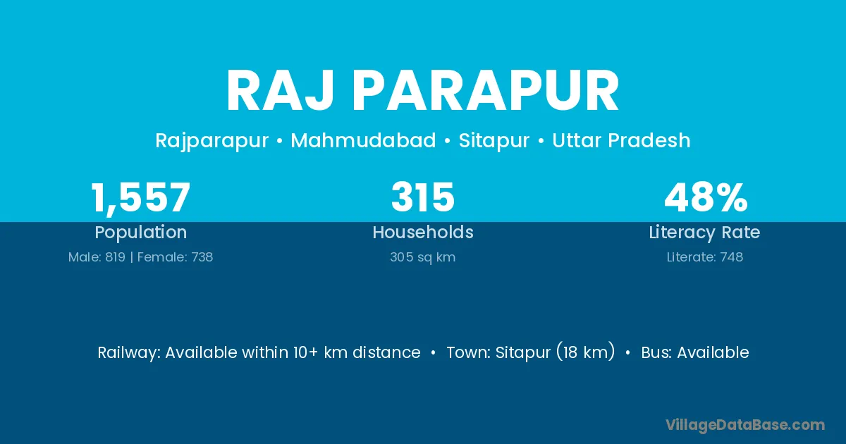Sitapur (18 km) is the nearest town to Raj Parapur village for major economic activities and is located approximately 18 km away.