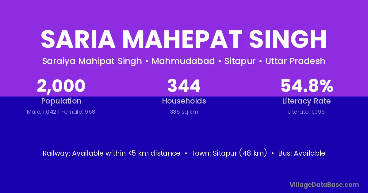 Sitapur (48 km) is the nearest town to Saria Mahepat Singh village for major economic activities and is located approximately 48 km away.