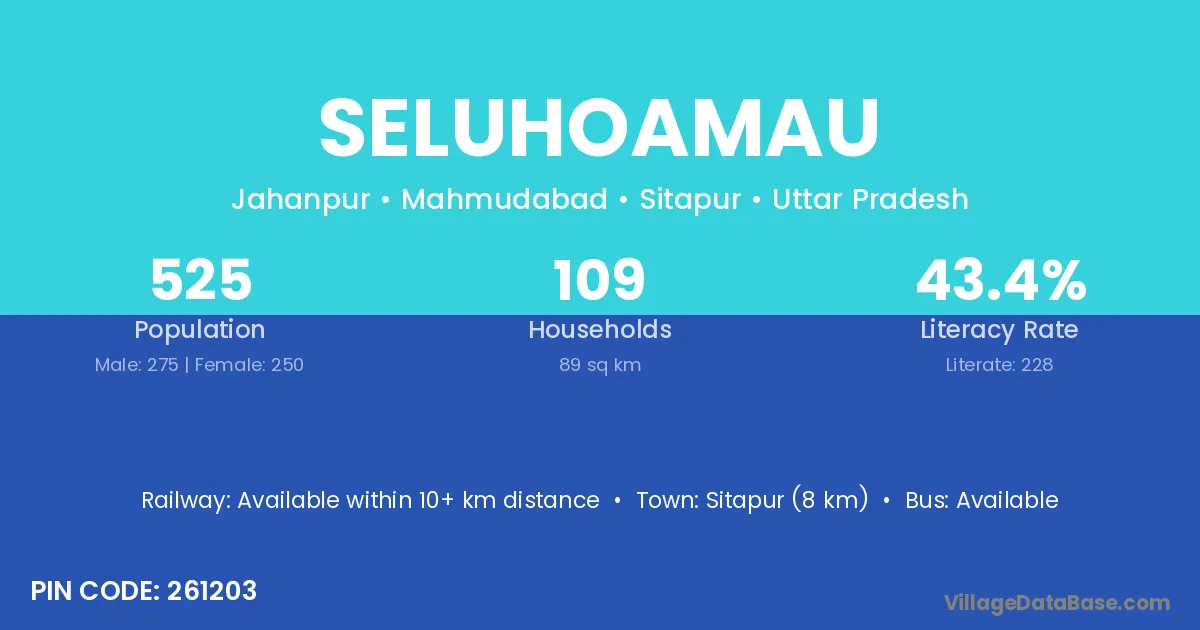 Sitapur (8 km) is the nearest town to Seluhoamau village for major economic activities and is located approximately 8 km away.