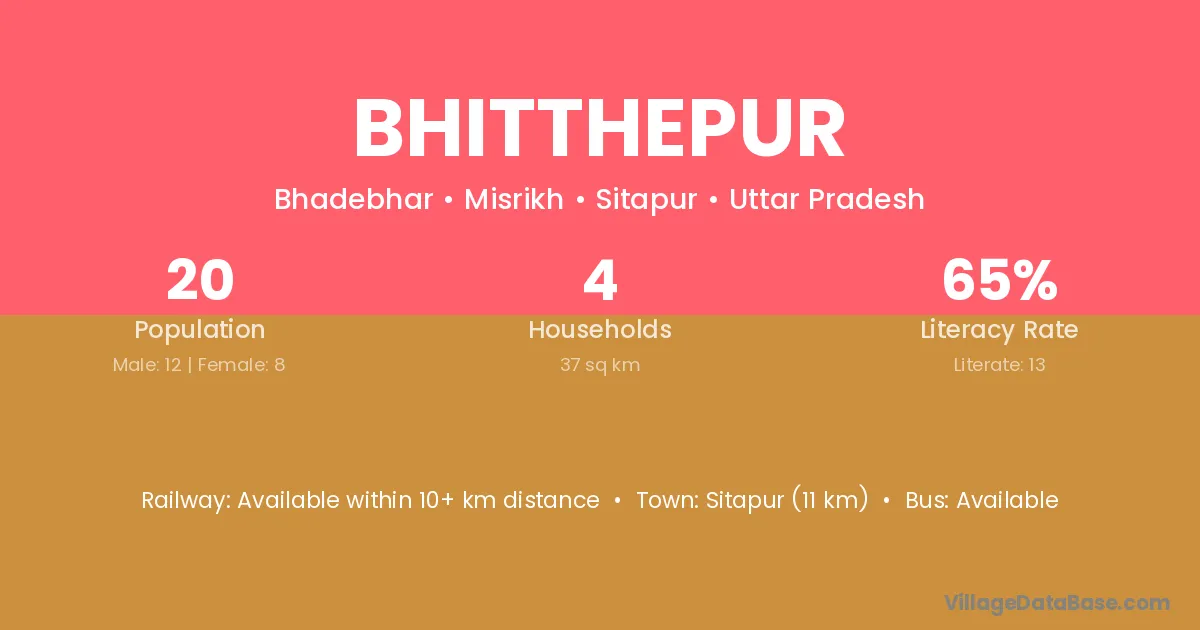 Sitapur (11 km) is the nearest town to Bhitthepur village for major economic activities and is located approximately 11 km away.