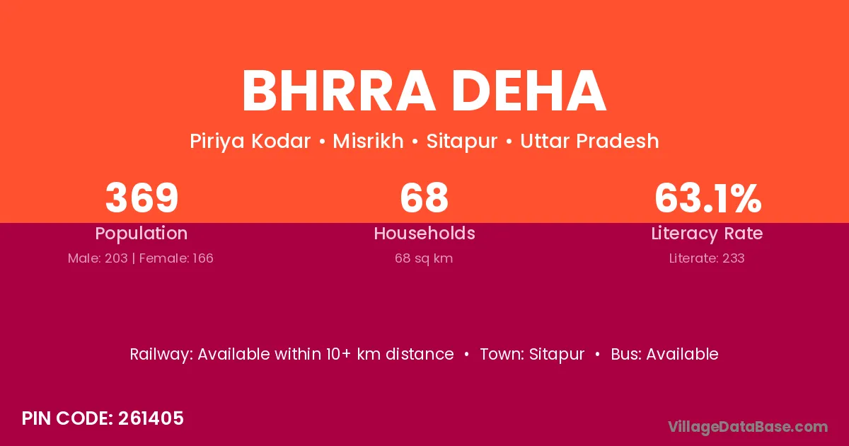 Sitapur is the nearest town to Bhrra Deha village for major economic activities