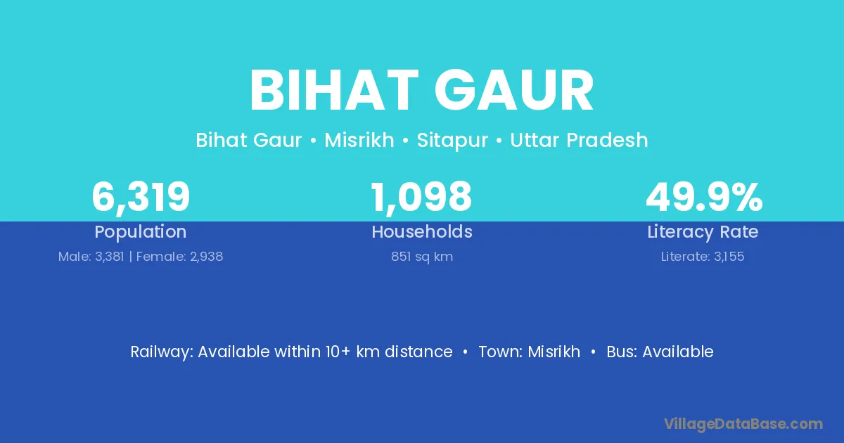 Bihat Gaur village has a total population of 6,319 people, of which 3,381 are males and 2,938 are females.