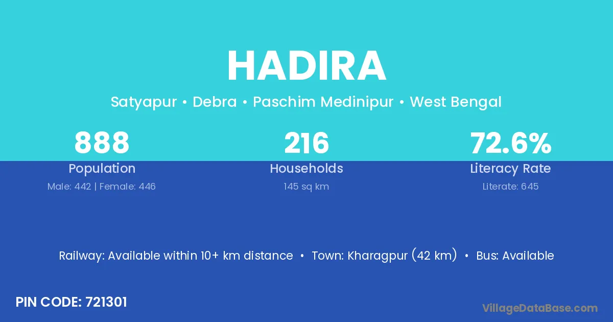 According to Census 2011 information, the village code of Hadira village is 261151.