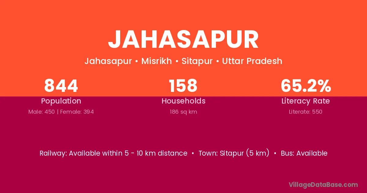 Sitapur (5 km) is the nearest town to Jahasapur village for major economic activities and is located approximately 5 km away.