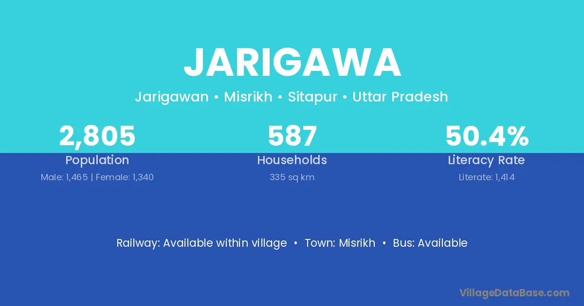 Jarigawa village is located in the Misrikh Tehsil of the Sitapur district in Uttar Pradesh .