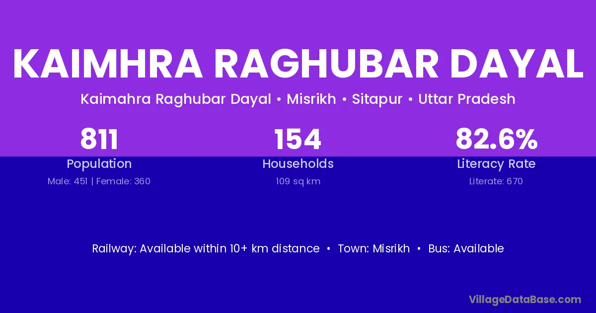 Kaimhra Raghubar Dayal village has a total population of 811 people, of which 451 are males and 360 are females.