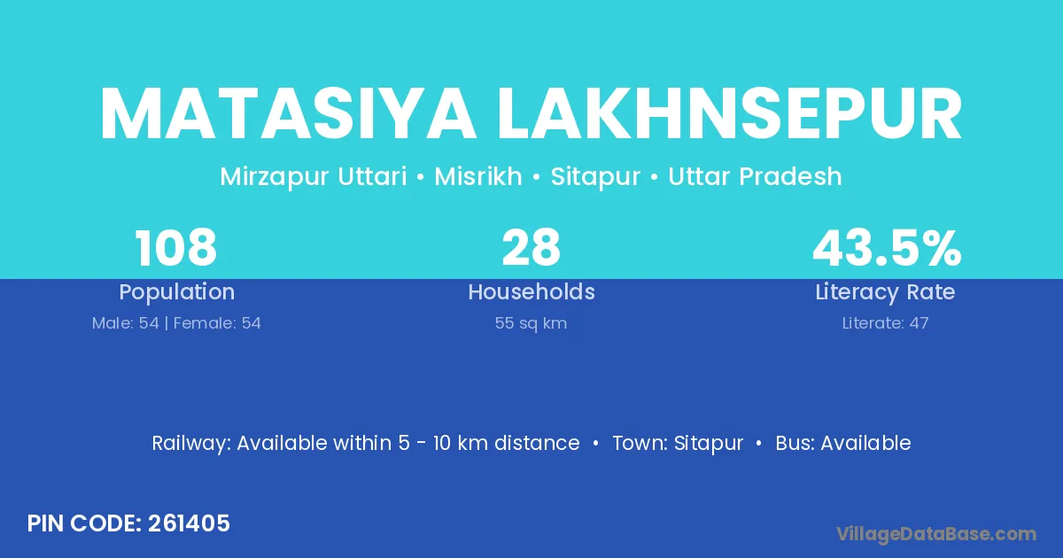 Matasiya Lakhnsepur village has a total population of 108 people, of which 54 are males and 54 are females.