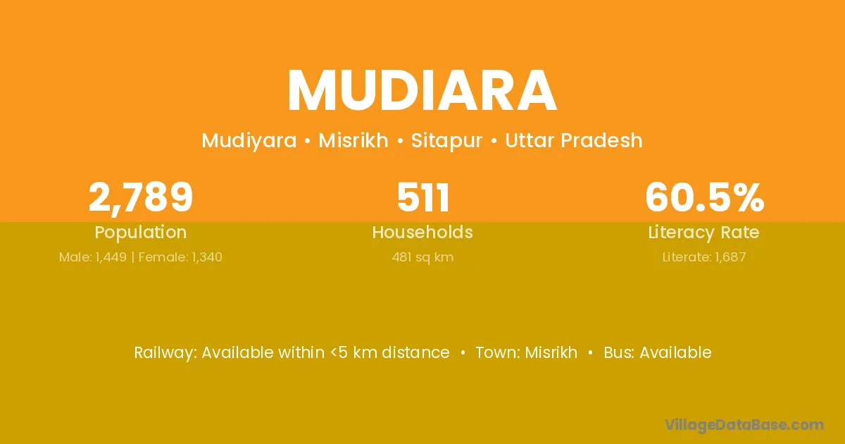 There are approximately 511 households in Mudiara village.