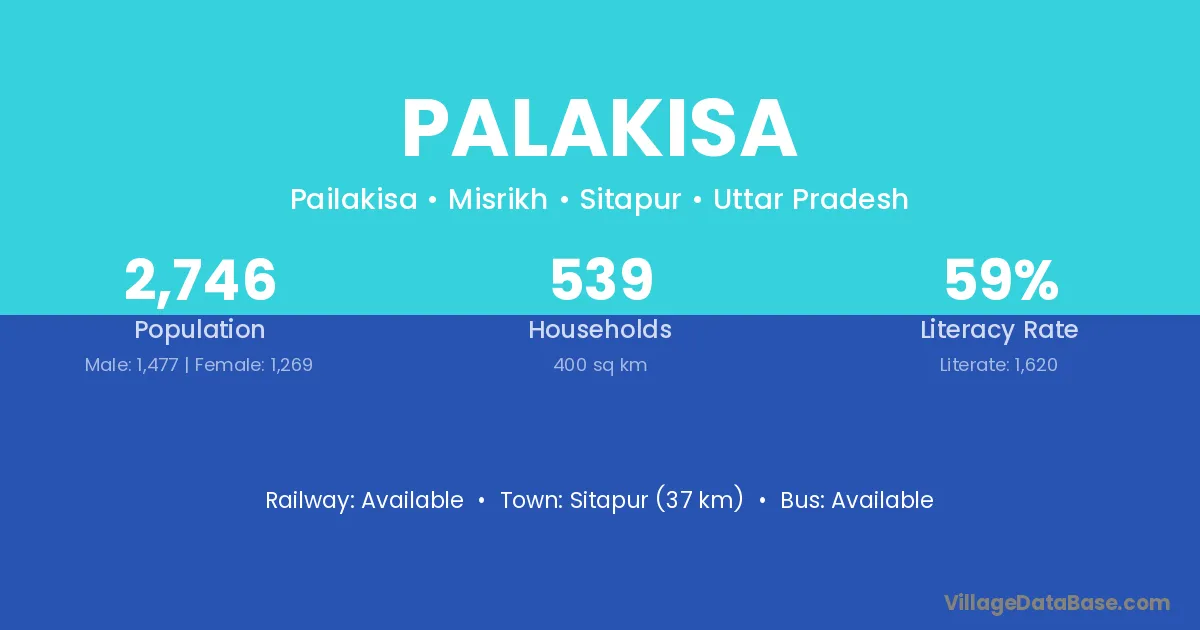 Sitapur (37 km) is the nearest town to Palakisa village for major economic activities and is located approximately 37 km away.