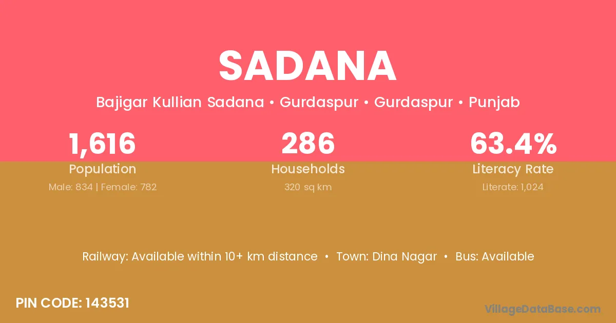 Sitapur (17 km) is the nearest town to Sadana village for major economic activities and is located approximately 17 km away.