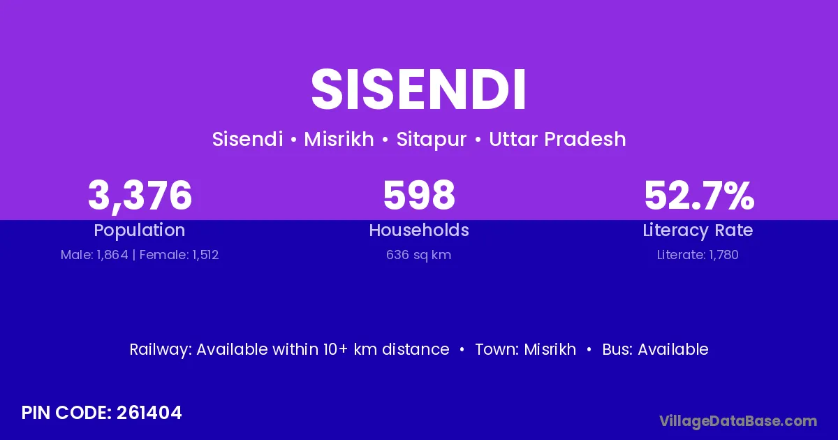Misrikh is the nearest town to Sisendi village for major economic activities