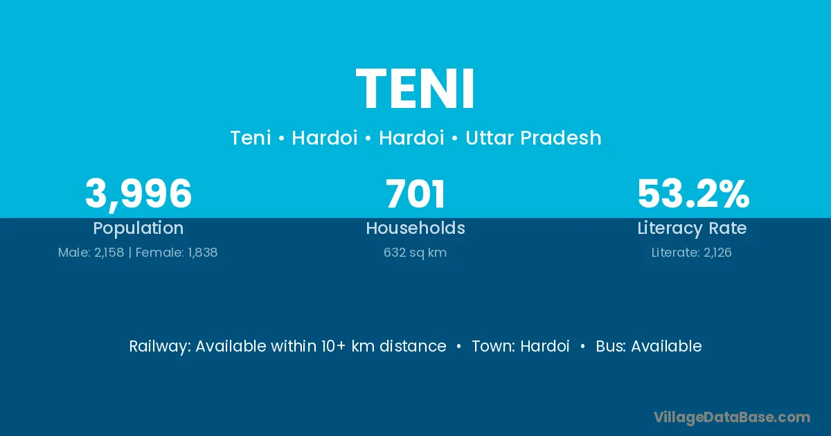 Sitapur (22 km) is the nearest town to Teni village for major economic activities and is located approximately 22 km away.