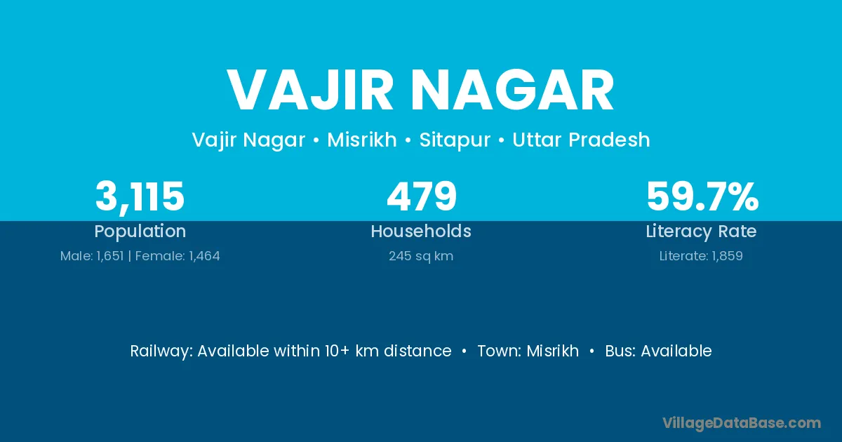 Vajir Nagar village has a total population of 3,115 people, of which 1,651 are males and 1,464 are females.