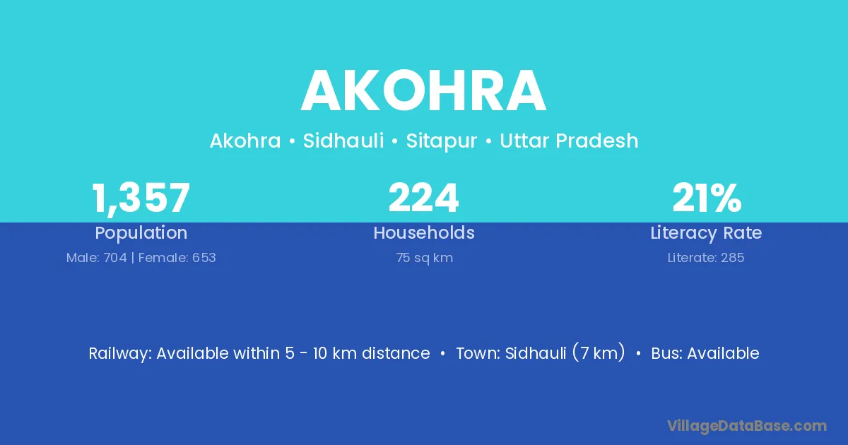 Akohra village has a total population of 1,357 people, of which 704 are males and 653 are females.