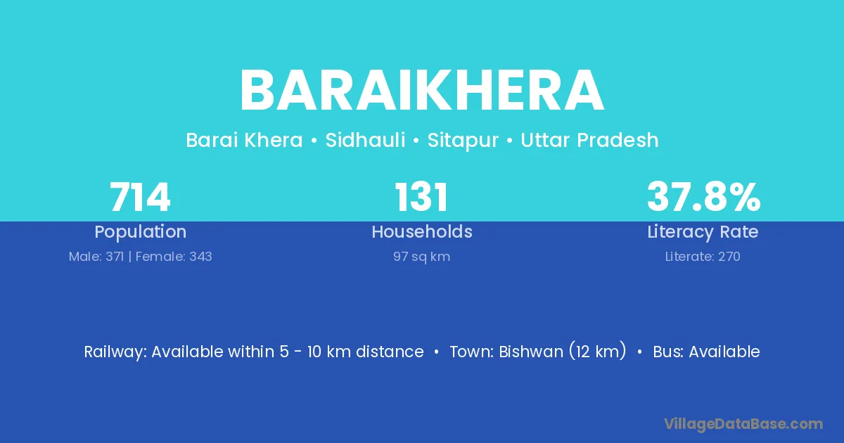 Bishwan (12 km) is the nearest town to Baraikhera village for major economic activities and is located approximately 12 km away.