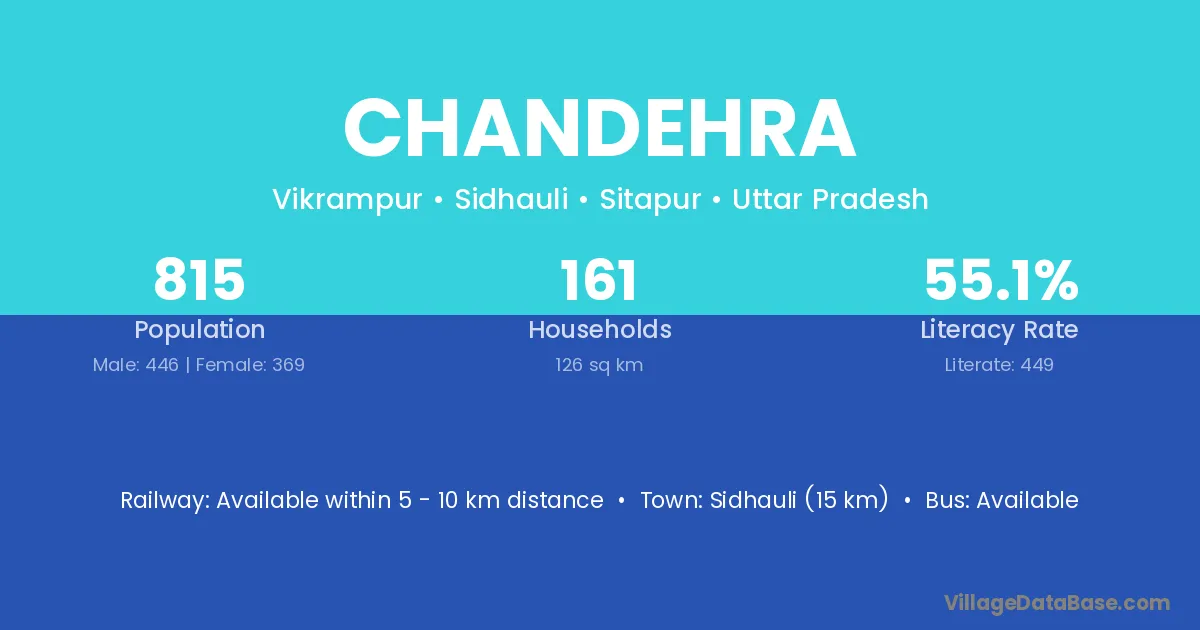 Sidhauli (15 km) is the nearest town to Chandehra village for major economic activities and is located approximately 15 km away.