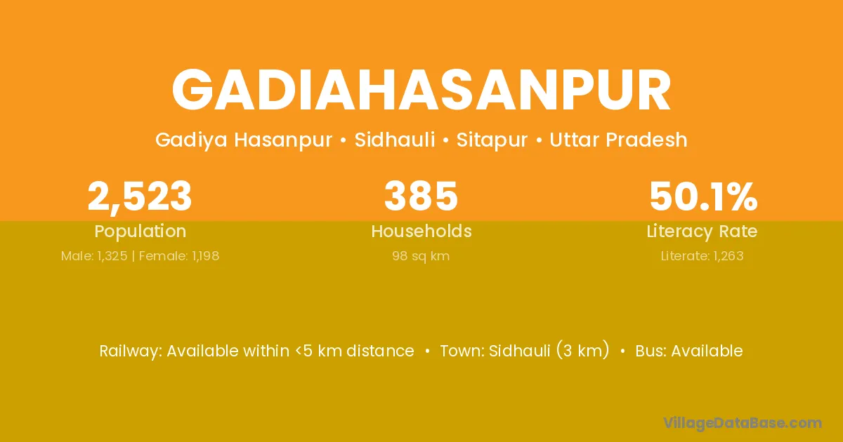 Sidhauli (3 km) is the nearest town to Gadiahasanpur village for major economic activities and is located approximately 3 km away.