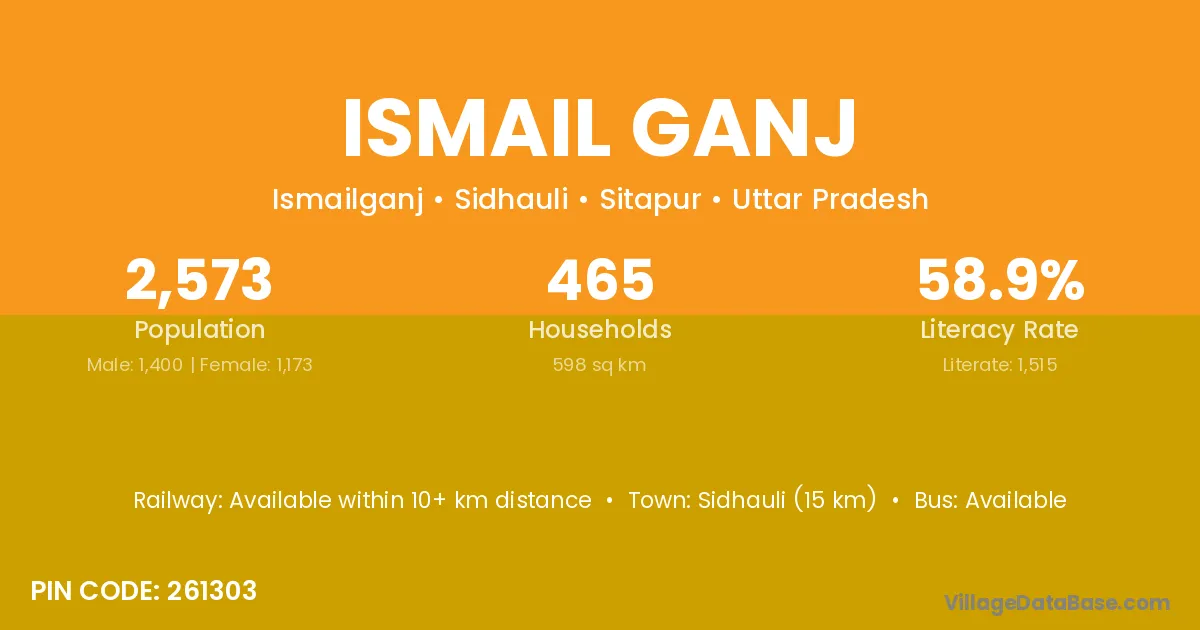 Sidhauli (15 km) is the nearest town to Ismail Ganj village for major economic activities and is located approximately 15 km away.