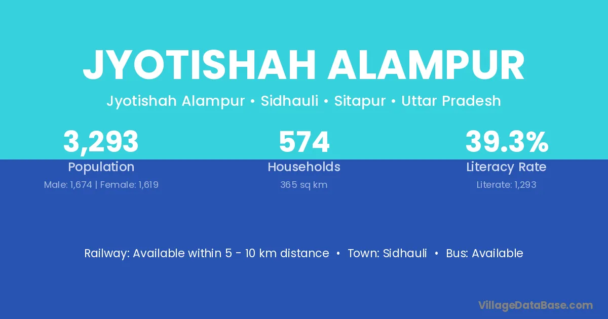 Jyotishah Alampur village has a total population of 3,293 people, of which 1,674 are males and 1,619 are females.