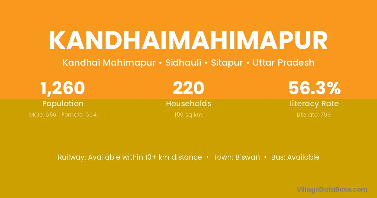 Kandhaimahimapur village has a total population of 1,260 people, of which 656 are males and 604 are females.