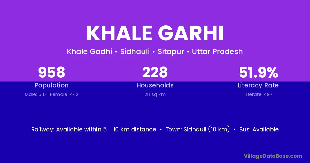 Khale Garhi village has a total population of 958 people, of which 516 are males and 442 are females.
