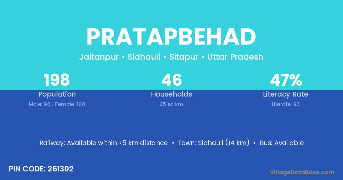 Pratapbehad village has a total population of 198 people, of which 98 are males and 100 are females.