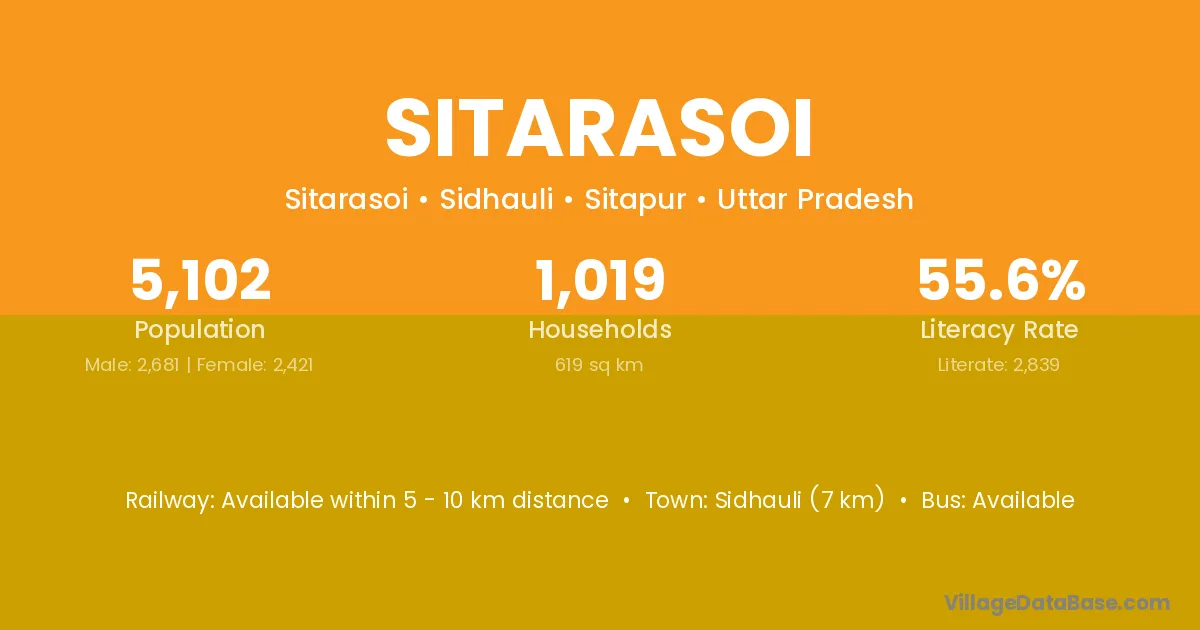 Sidhauli (7 km) is the nearest town to Sitarasoi village for major economic activities and is located approximately 7 km away.