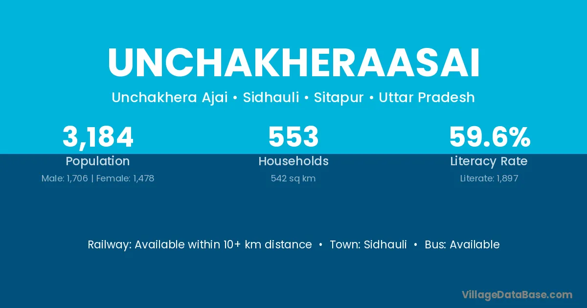 Unchakheraasai village has a total population of 3,184 people, of which 1,706 are males and 1,478 are females.