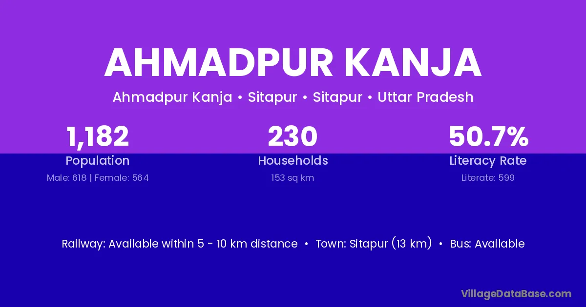 Sitapur (13 km) is the nearest town to Ahmadpur Kanja village for major economic activities and is located approximately 13 km away.
