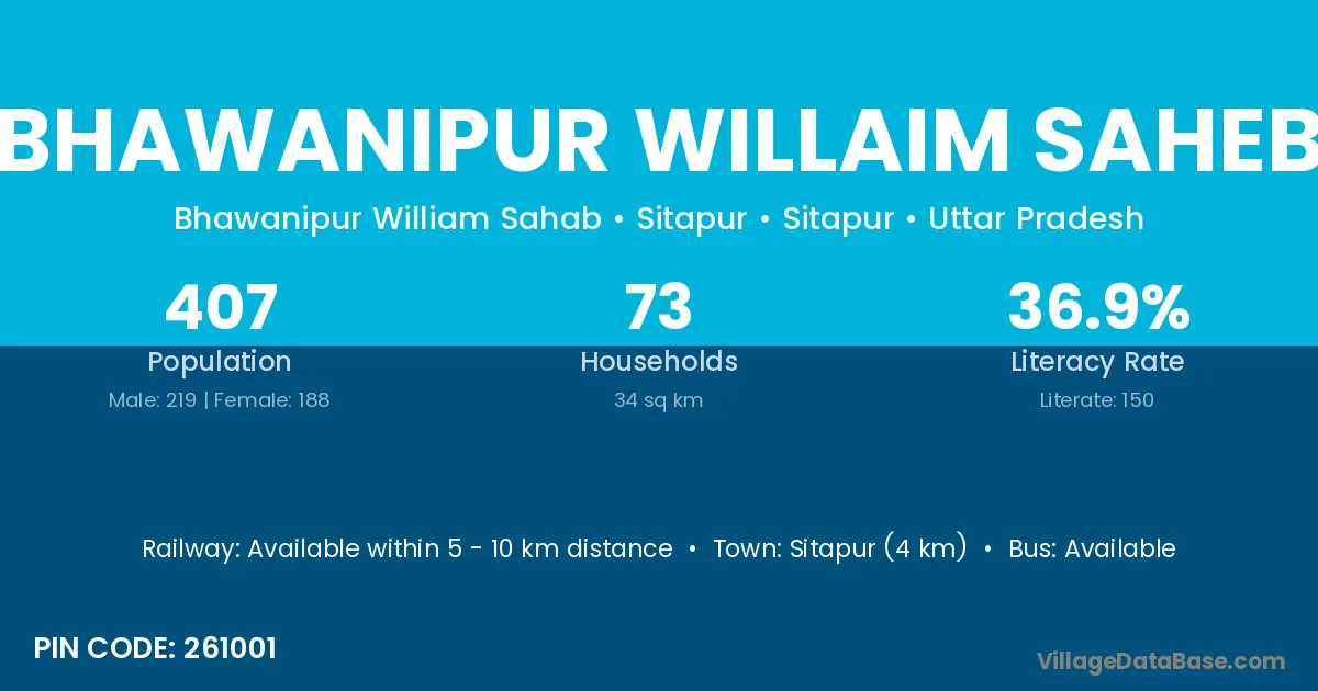 Sitapur (4 km) is the nearest town to Bhawanipur Willaim Saheb village for major economic activities and is located approximately 4 km away.