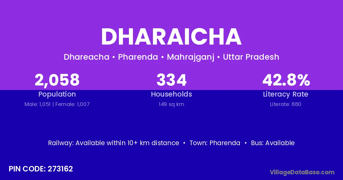 Sitapur (5 km) is the nearest town to Dharaicha village for major economic activities and is located approximately 5 km away.