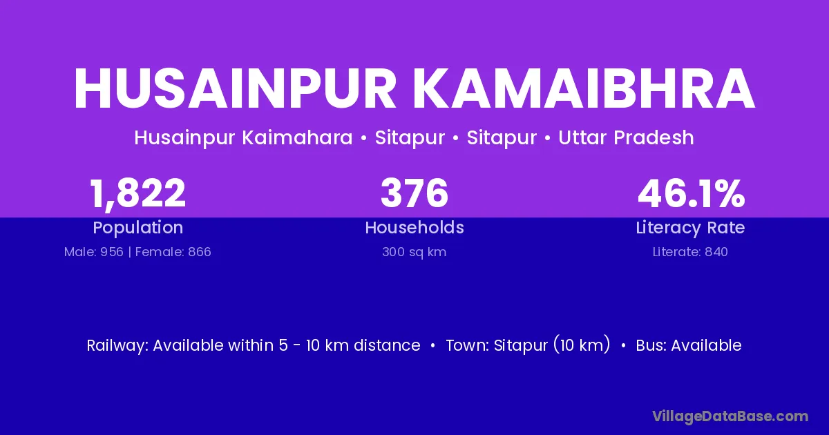 Sitapur (10 km) is the nearest town to Husainpur Kamaibhra village for major economic activities and is located approximately 10 km away.
