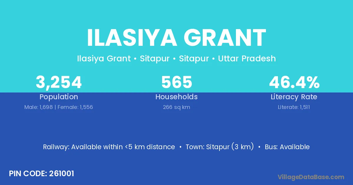 Sitapur (3 km) is the nearest town to Ilasiya Grant village for major economic activities and is located approximately 3 km away.