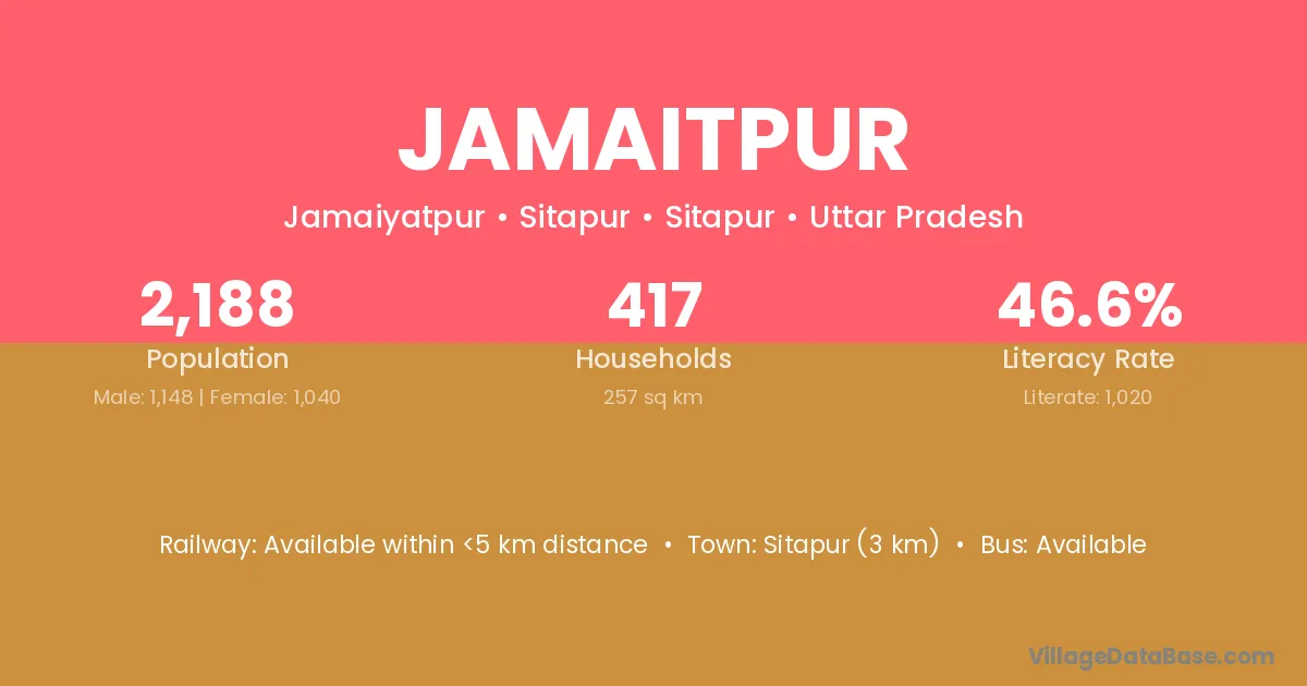 Sitapur (3 km) is the nearest town to Jamaitpur village for major economic activities and is located approximately 3 km away.