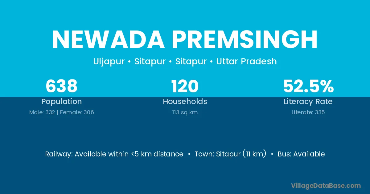 Sitapur (11 km) is the nearest town to Newada Premsingh village for major economic activities and is located approximately 11 km away.