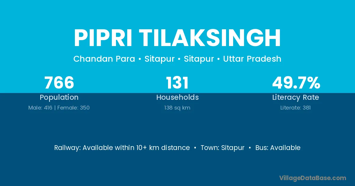 Sitapur is the nearest town to Pipri Tilaksingh village for major economic activities