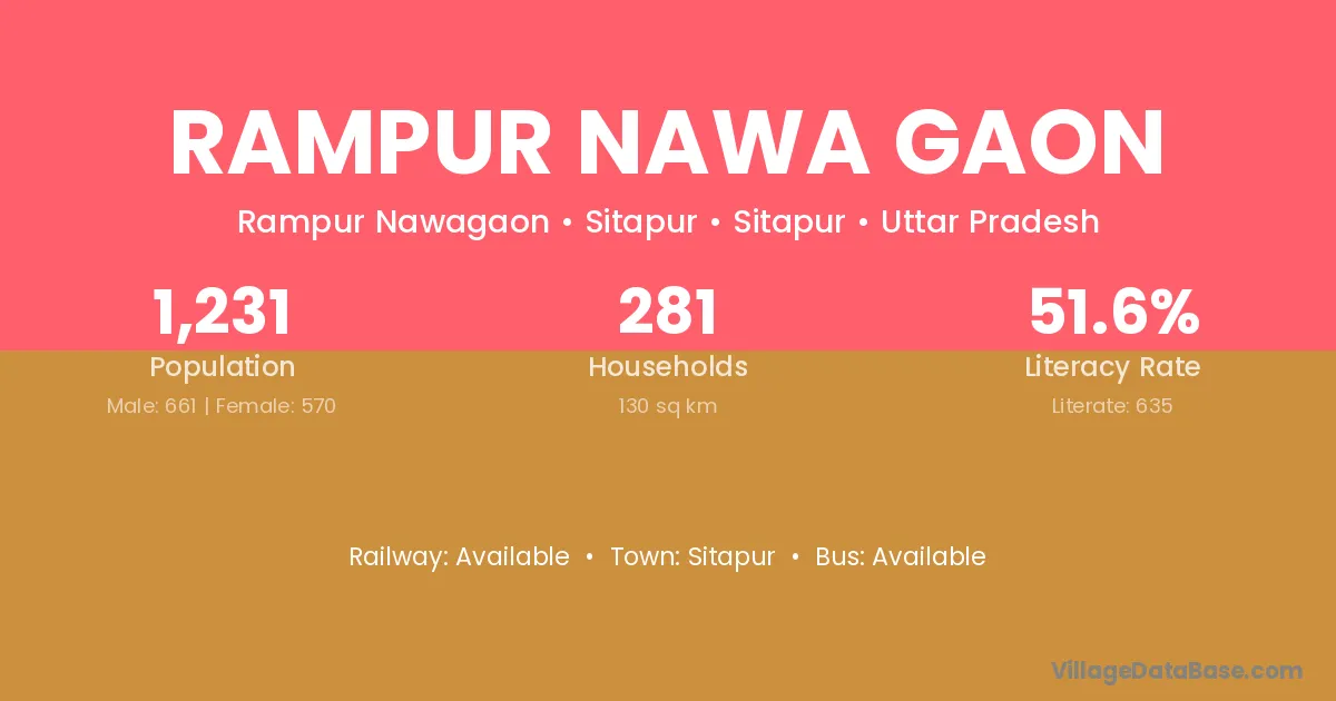 Rampur Nawa Gaon village has a total population of 1,231 people, of which 661 are males and 570 are females.