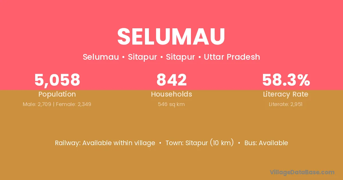 Sitapur (10 km) is the nearest town to Selumau village for major economic activities and is located approximately 10 km away.