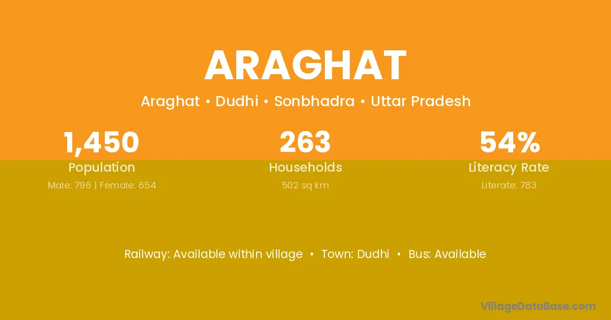 Araghat village has a total population of 1,450 people, of which 796 are males and 654 are females.