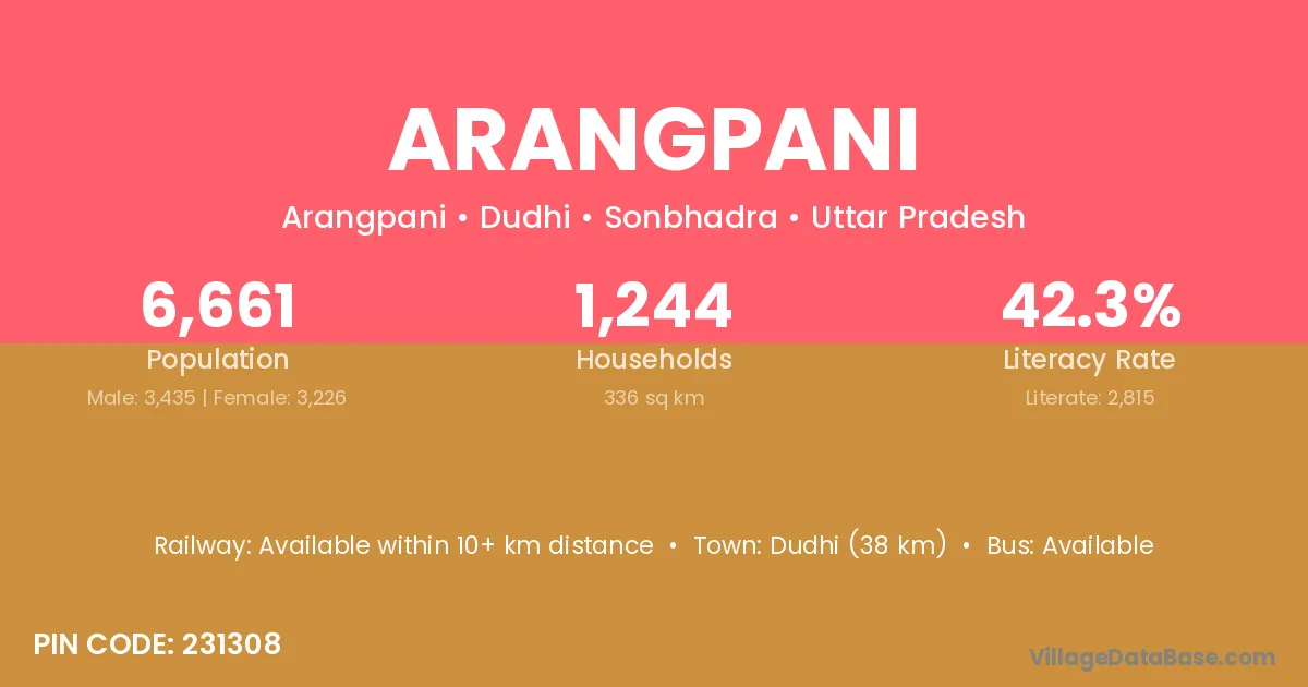 Arangpani village has a total population of 6,661 people, of which 3,435 are males and 3,226 are females.