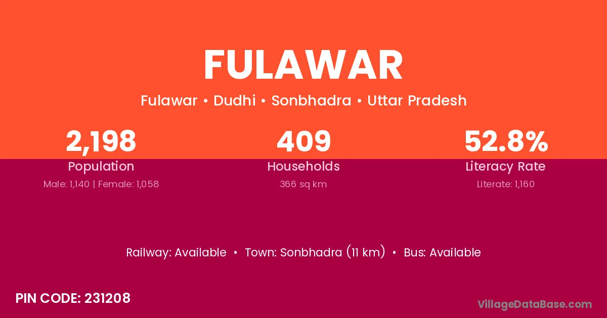 Sonbhadra (11 km) is the nearest town to Fulawar village for major economic activities and is located approximately 11 km away.