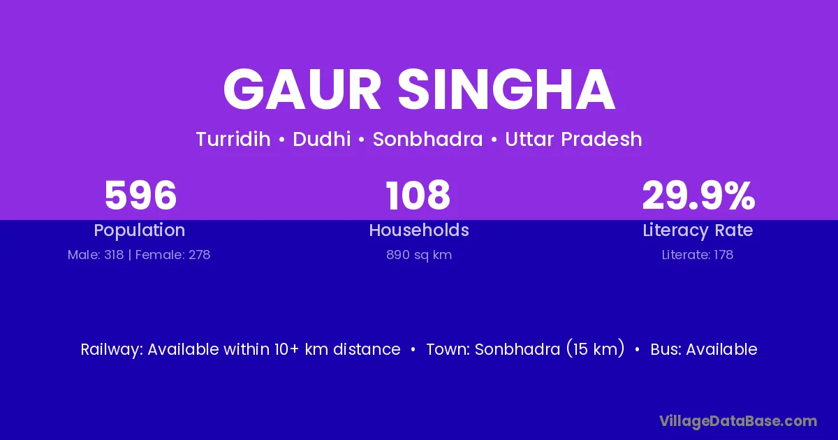 Sonbhadra (15 km) is the nearest town to Gaur Singha village for major economic activities and is located approximately 15 km away.