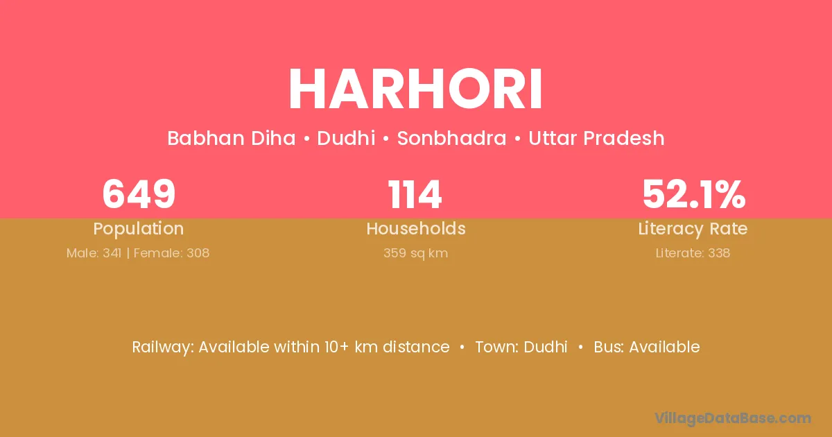 Harhori village has a total population of 649 people, of which 341 are males and 308 are females.
