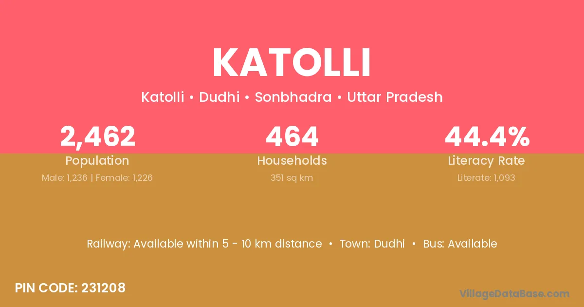 There are approximately 464 households in Katolli village.