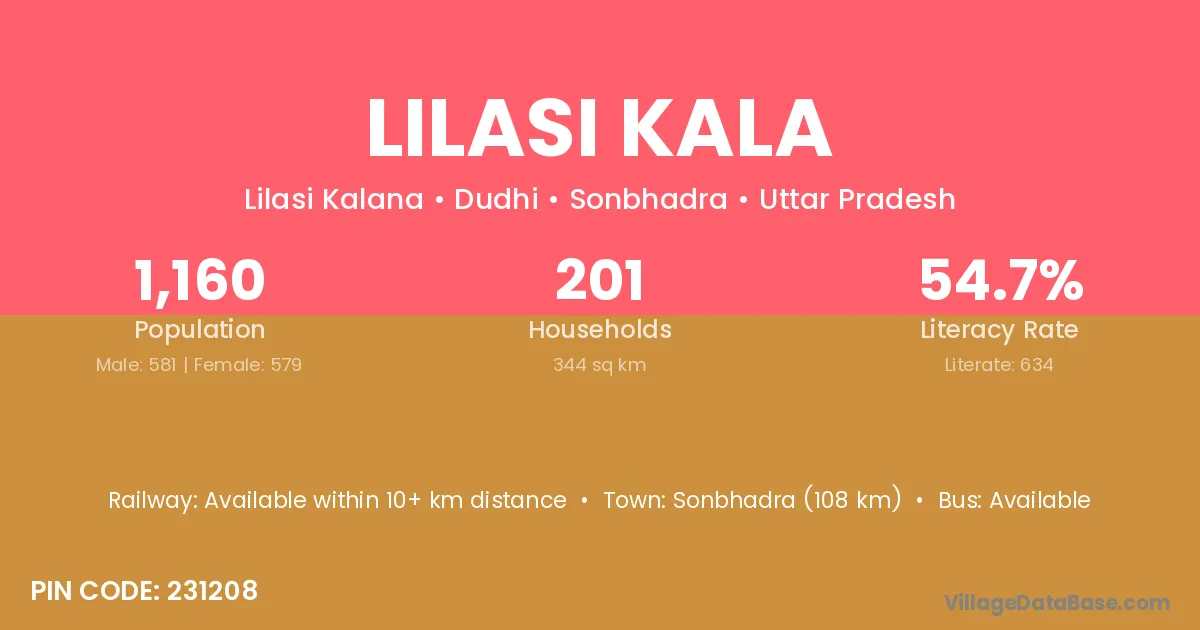 Lilasi Kala village has a total population of 1,160 people, of which 581 are males and 579 are females.