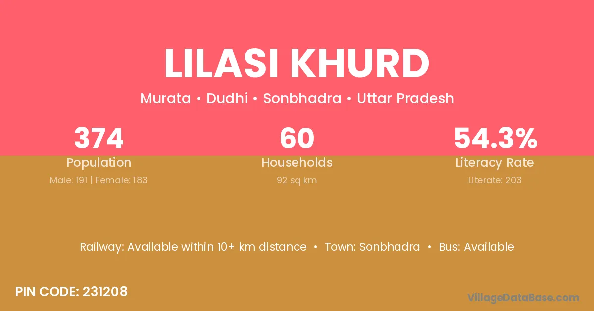 Lilasi Khurd village has a total population of 374 people, of which 191 are males and 183 are females.