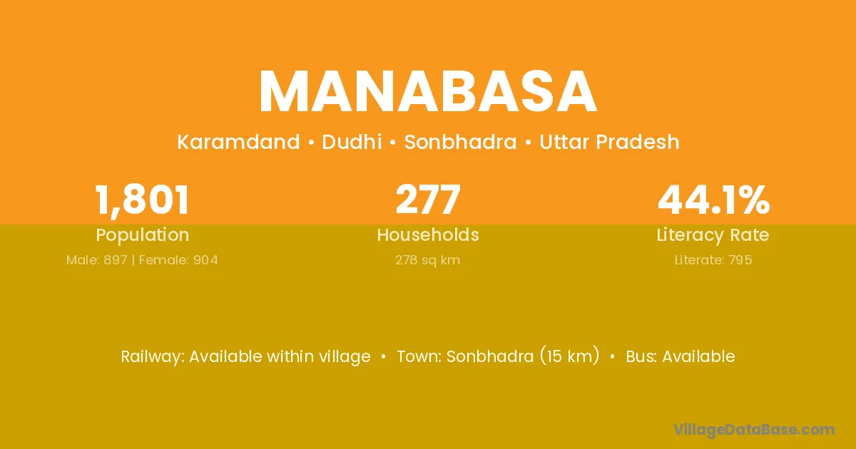 Sonbhadra (15 km) is the nearest town to Manabasa village for major economic activities and is located approximately 15 km away.
