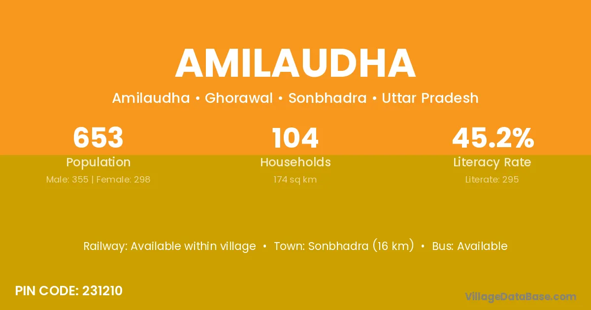 Sonbhadra (16 km) is the nearest town to Amilaudha village for major economic activities and is located approximately 16 km away.