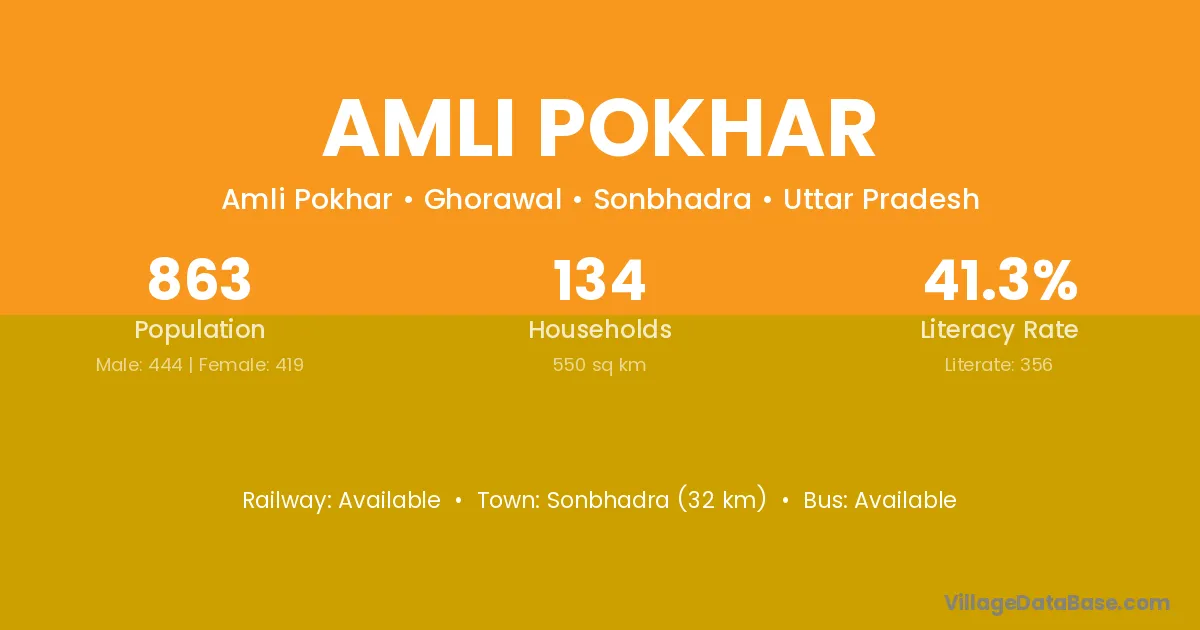 Amli Pokhar village has a total population of 863 people, of which 444 are males and 419 are females.