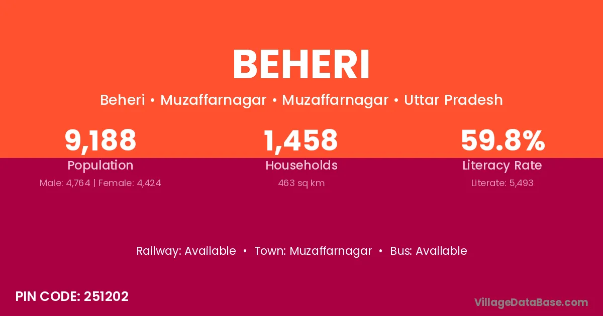 The literacy rate of Beheri village is 60.91%. Male literacy stands at 69.23% and female literacy at 51.53%.